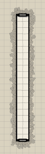 As the party exits the narrow hallway, they’ll find themselves at the south end of this room - what appears to be a triangular shape with a large, 35 foot gap between the platform where the party stands and the obvious exit on the other side. The floor is covered in sand, but the walls themselves are perfectly smooth and the ceiling seems to be extraordinarily high. The pit under the gap is deep and dark, and appears to be at least a 50 foot drop - enough to cause serious damage, but probably not enough to be instantly fatal.